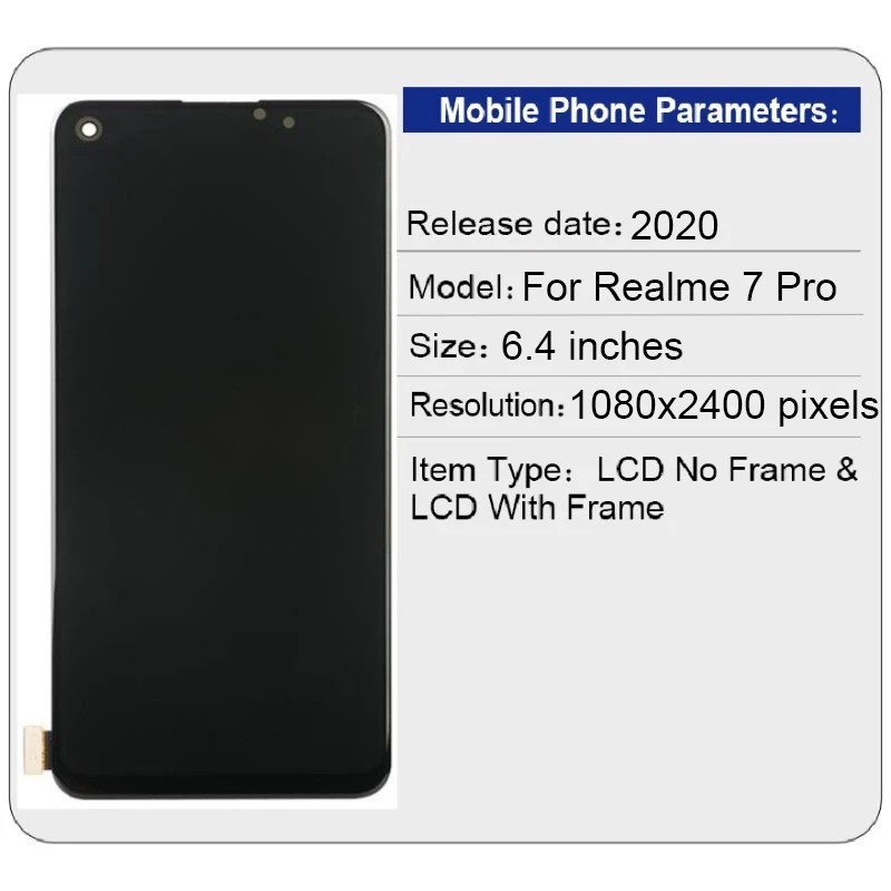 Product Name: 6.4 "SUPER AMOLED Dla Oppo Realme 7 Pro Wyświetlacz LCD Ekran Dotykowy Dla Realme RMX2170 Digitizer Ekran Do Montażu Wymiana