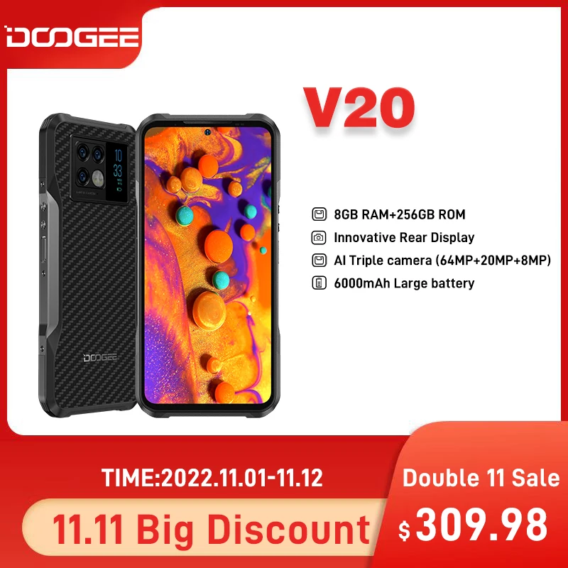 Special Offer [Światowa Premiera] Innowacyjny Tylny Wyświetlacz DOOGEE V20 5G Wersja Globalna Wytrzymały Telefon Komórkowy 8 GB 256 GB Wytrzymały Smartfon NFC 64 MP Potrójny Aparat 6,43 "FHD Wyświetlacz AMOLED Firmy Samsung Smartfon Discount (38%OFF) Today!