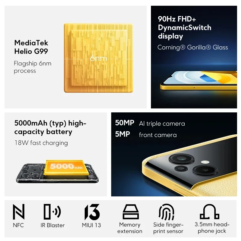 Product Name: Global Version POCO M5 NFC MTK G99 Octa Core 90Hz 6.58" FHD+ Display 50MP Triple Camera 5000mAh Battery Smartphone